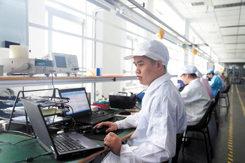 一片小小的芯片,需要成百上千道工序,圖為中森通信的技術(shù)人員正在對(duì)數(shù)據(jù)進(jìn)行考證。長(zhǎng)沙晚報(bào)通訊員 袁路華 攝